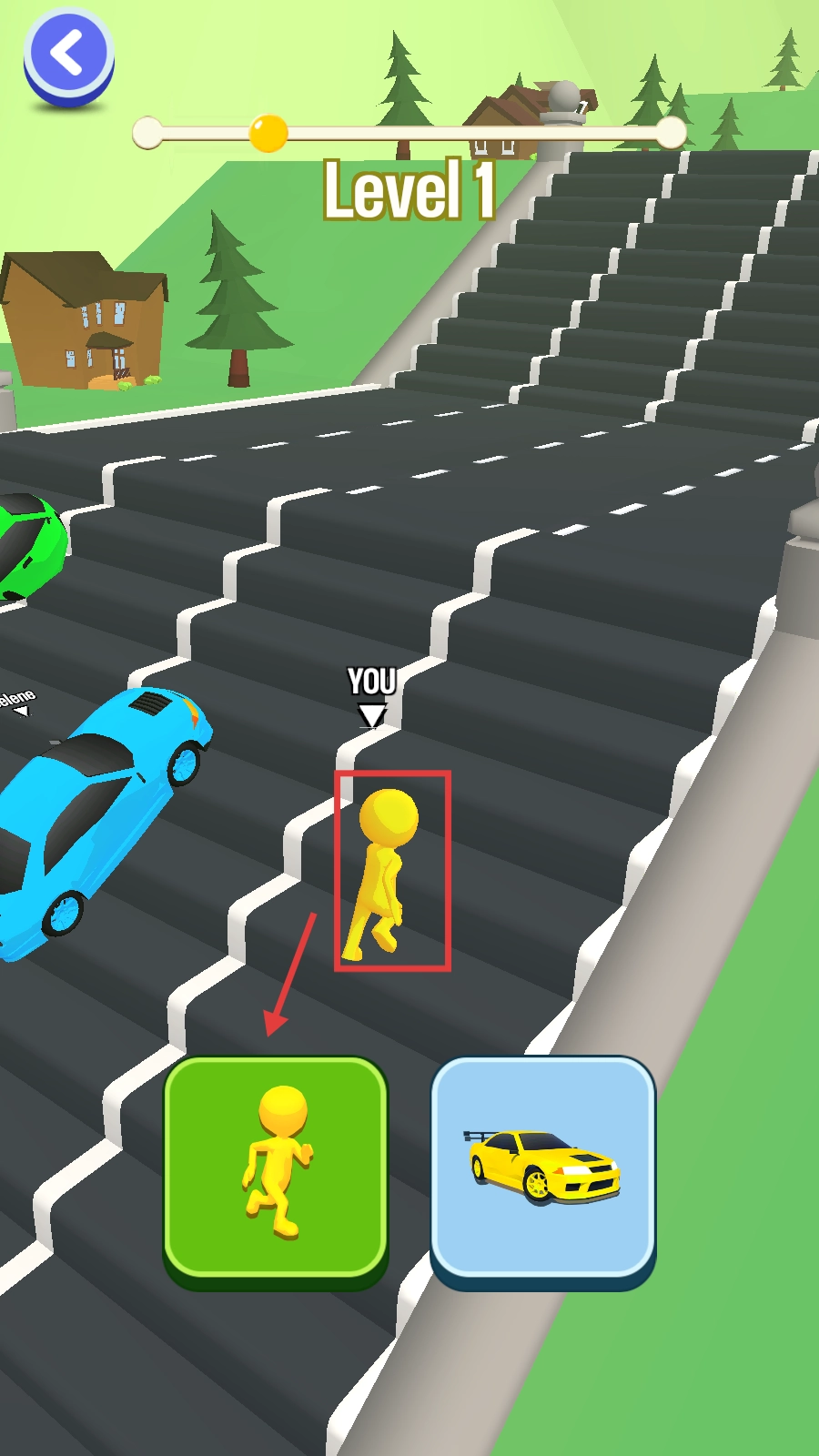 遇到阶梯路段时,会变身为黄色小人,凭借它灵活的身形,稳稳地向上攀爬,越过阶梯障碍。