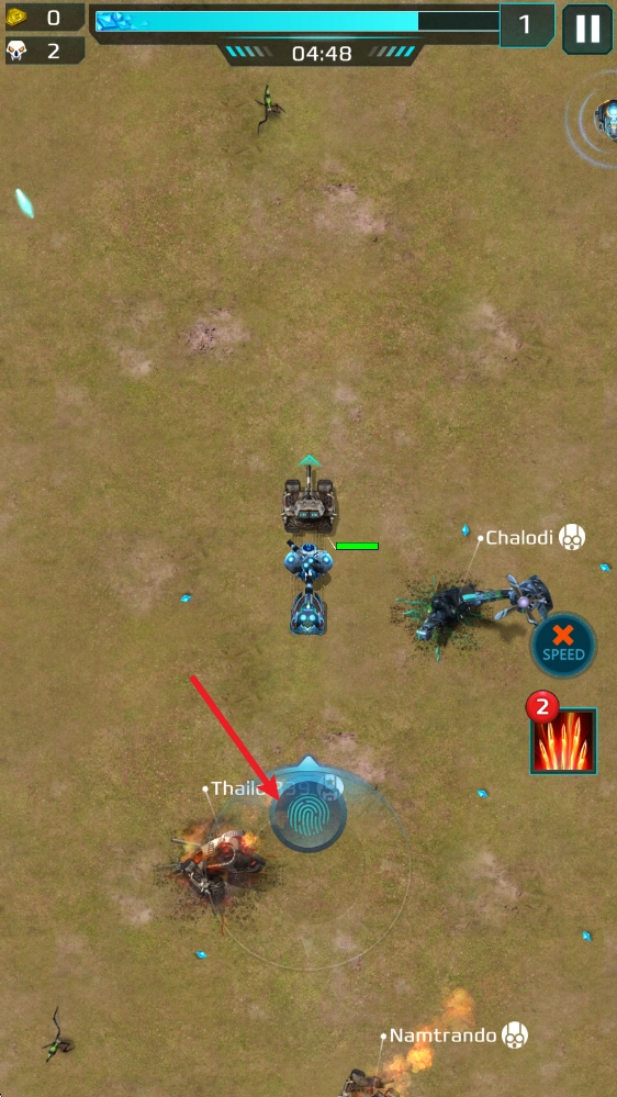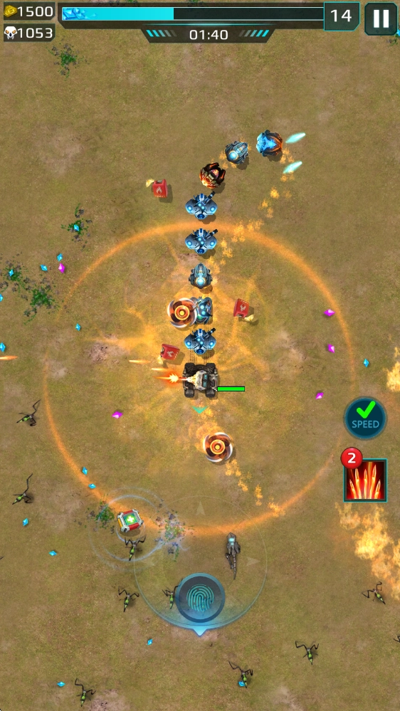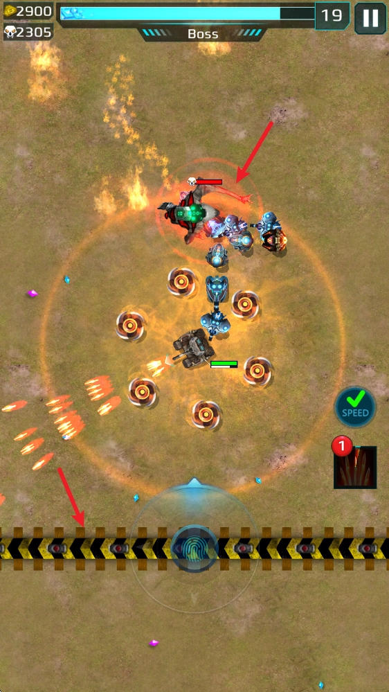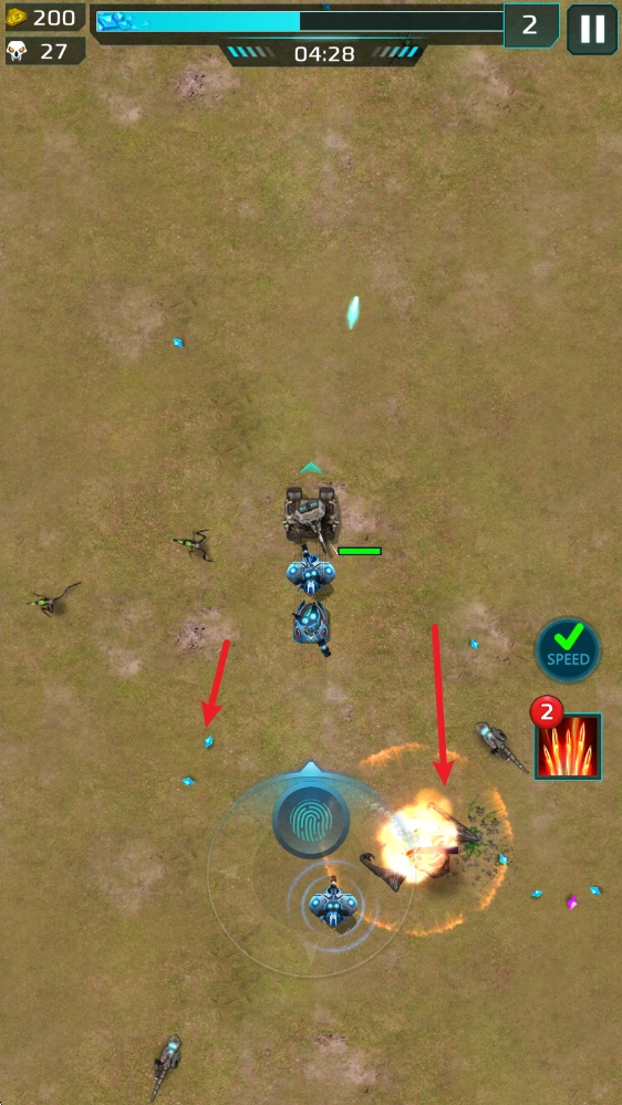游戏中,我们拖动屏幕来控制自己的坦克移动。