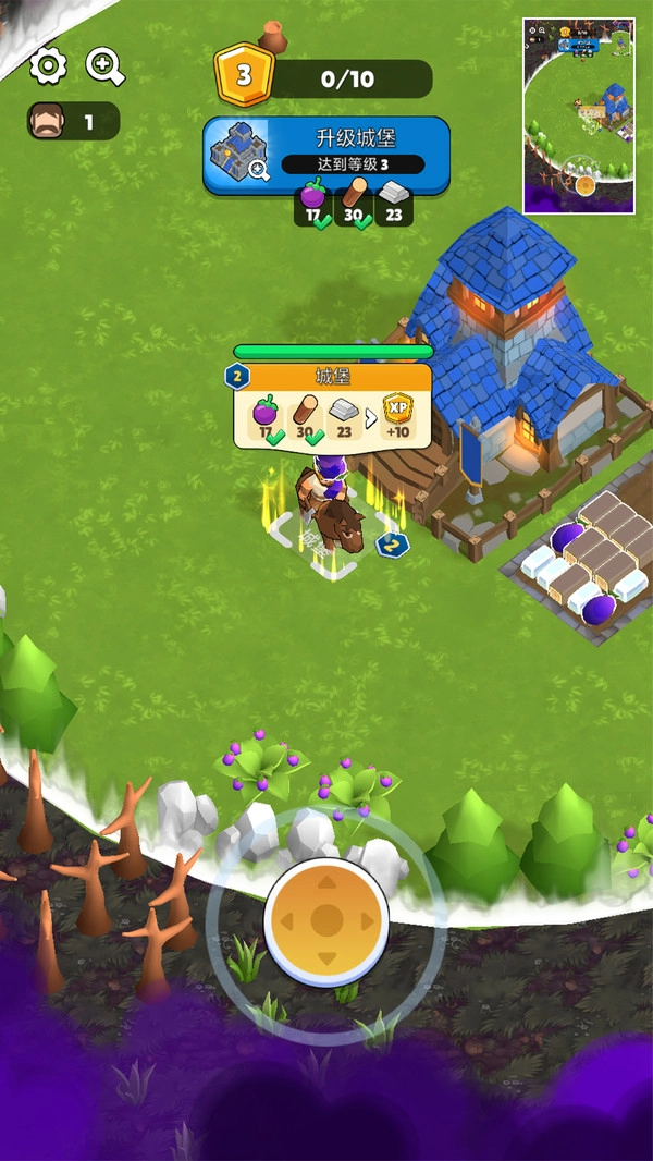 资源采集环节,玩家只需滑动国王,就能轻松获取木材、石材这类建造所需的资源,让游戏过程充满满满的成就感。