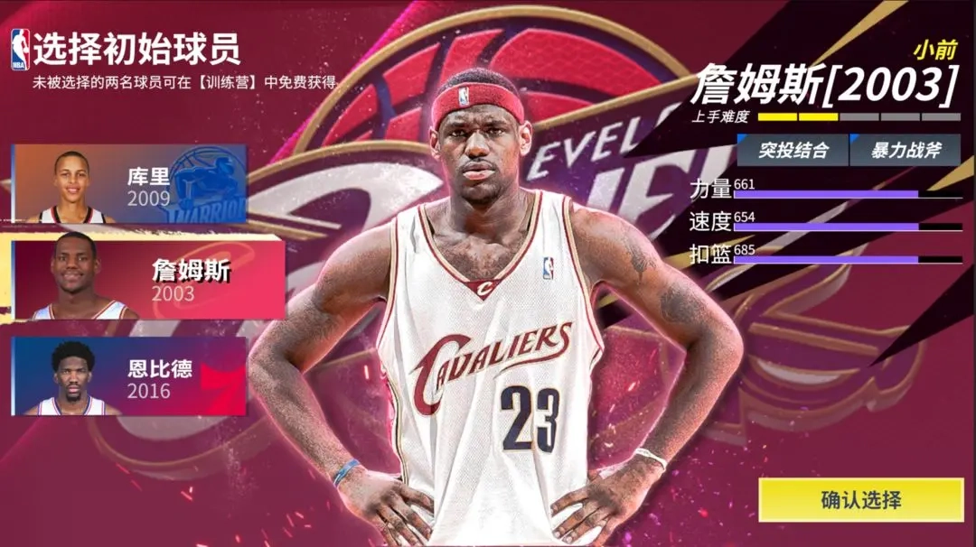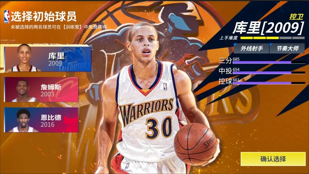 各位“巨星”首次登录游戏完成起名后,在初始球员选择界面会遇到三选一的选项:新秀库里、新秀恩比德和新秀詹姆斯。这三位新秀球员会在游戏前期陪伴各位“巨星”开启联合试训的旅程。在这篇攻略里,本吉祥物将详细讲解这三位球星的特性,助力各位“巨星”做出最适合的选择,并快速掌握这三位新秀球星的玩法,在赛场上称霸!