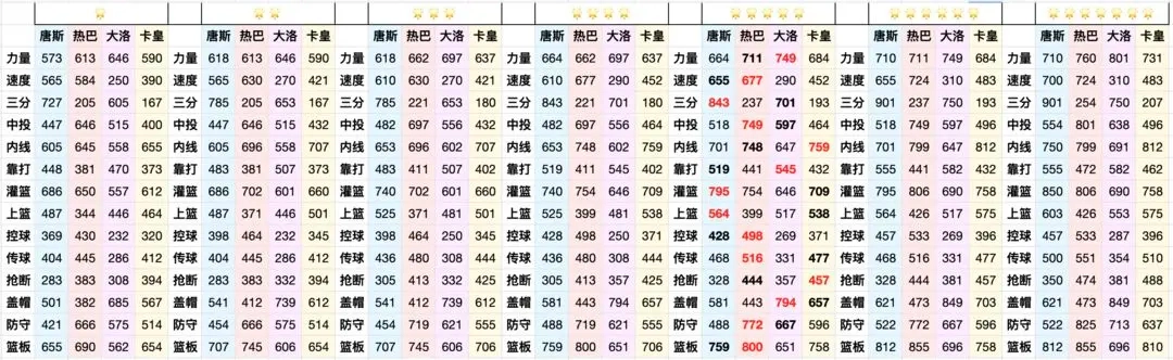 综合来看,唐斯的空间拉开与三分投射能力更为出色,阿德巴约在篮板拼抢和补防协防方面表现更强,大洛佩兹具备顶尖的盖帽水准和不俗的空间三分威胁,卡佩拉的内线终结能力勉强尚可。特别是在当前扣篮型球员优势明显的版本环境下,唐斯与大洛的战术价值愈发突出;阿德巴约如同蒙尘的明珠,仍有极大的潜力待挖掘;而卡佩拉若非核心阵容刚需或特别偏爱,并不建议优先选择。