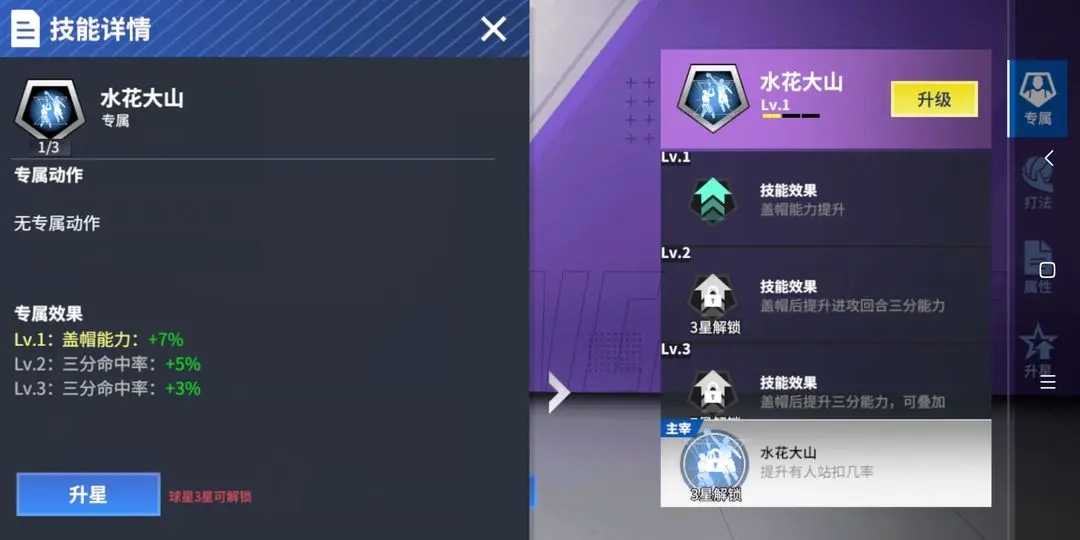 ■专属技能:增强盖帽表现与三分投射精准度,完成盖帽后还能进一步提升三分命中率