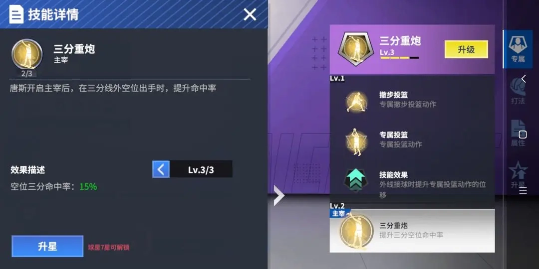 ①专属技能:提高空位三分和中投命中率