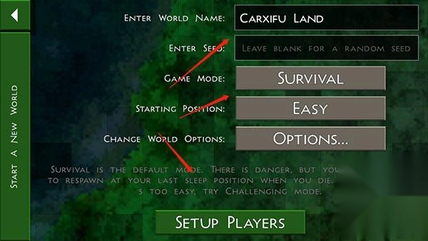 世界名称建议使用数字,不要用中文,这是游戏模式,此处有注释。
