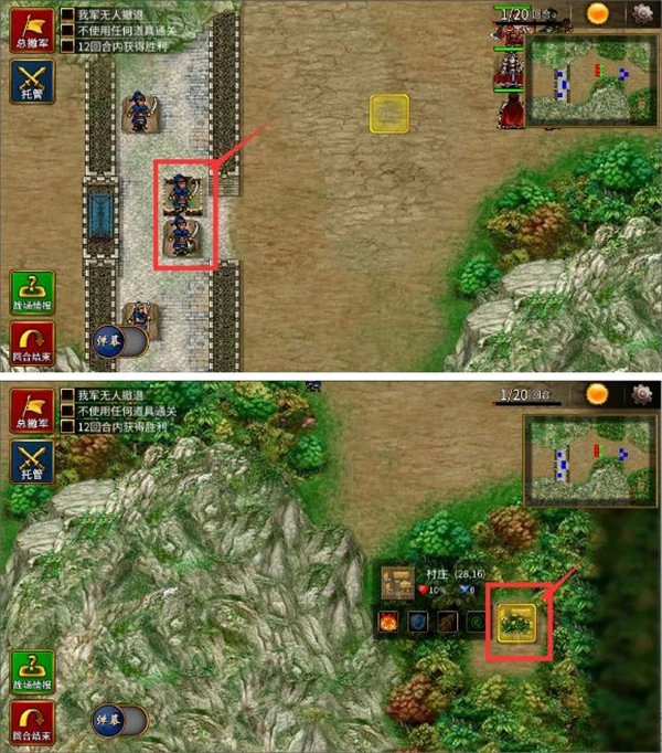 另一处是左上山贼据点附近,建议让庞德靠近,这样能防止敌人刷新出来后形成合击将我方秒杀。