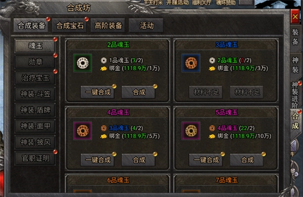 三件史诗装备可以合成一件传奇装备