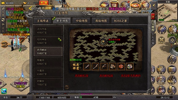 55级推荐打宝地图包括赤月峡谷1层、赤月峡谷2层以及带有千年魂环的赤月3层,这些地图的极品掉落是赤月级传奇装备套装。