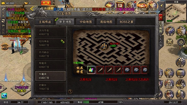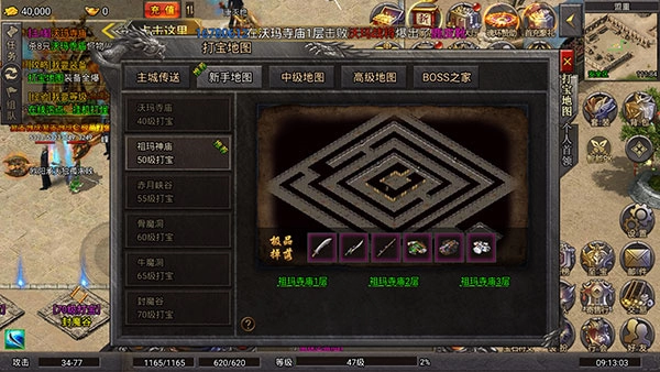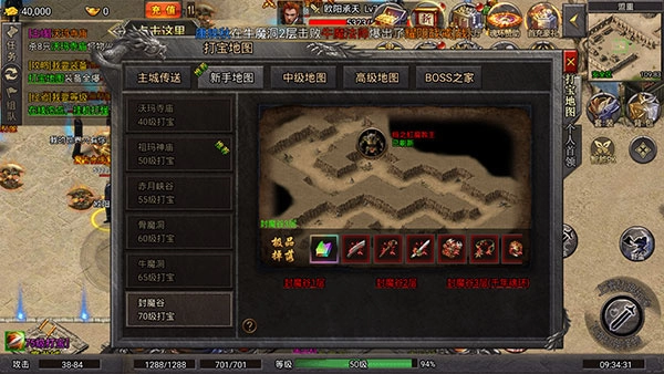 40级打宝推荐地图为沃玛寺庙,该地图包含1层、2层、3层,可掉落的极品装备是沃玛级史诗套装。