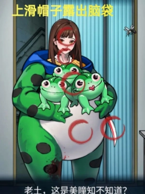 进入新场景后找出其中的异常之处,具体包括青蛙服装、青蛙仔、带血的刀,还有上滑帽子露出脑袋后可见的金色眼睛以及脖子上的鳞片,之后选择“好吧”。