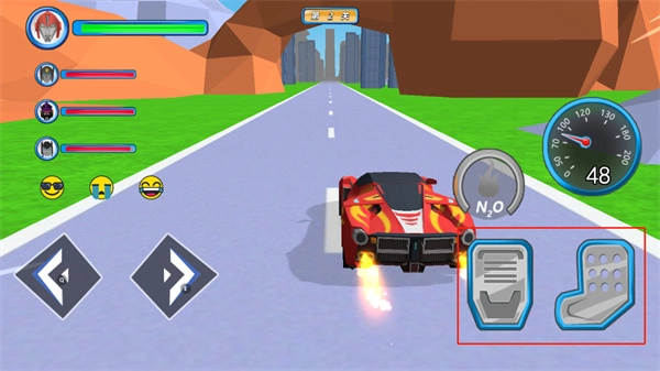 点击右下角的按钮可以实现加速功能,而它旁边的按钮则是用于刹车的。