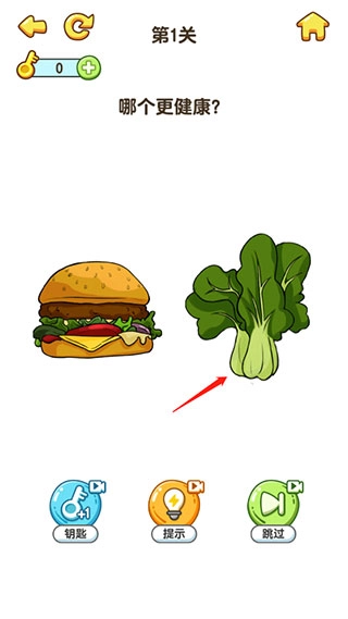 关卡1的答案:青菜——健康才是关键。