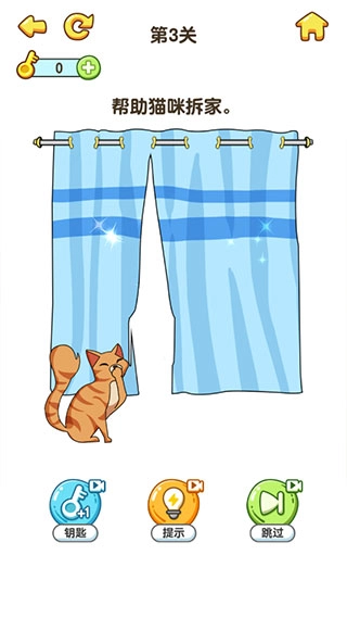 关卡3的答案:拖下猫爪,窗帘也要抓烂。