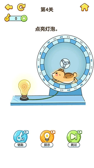关卡4的答案:把仓鼠放进轮子里。