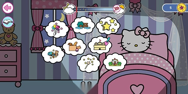 凯蒂猫已经进入了梦乡,不过会有不少【梦境】以气泡的形式呈现出来,任意点击其中一个就能开启梦境的游玩之旅。