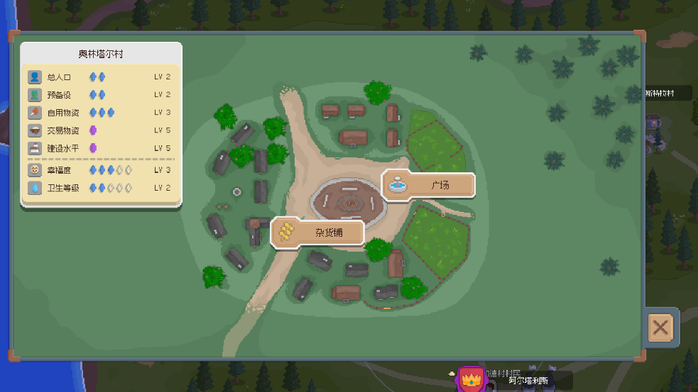 会向玩家呈现该村庄的部分基础信息以及可供交互的场景;