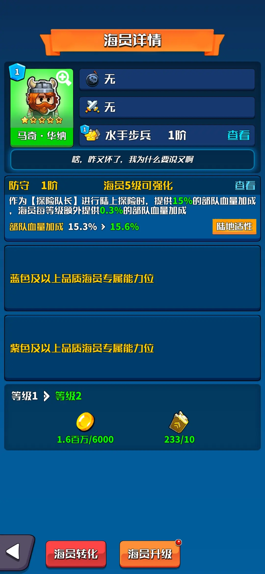 热知识:海员转化能返还资源,大家可以等抽到优质船员后,通过返还的资源来培养,最关键的一点是:
