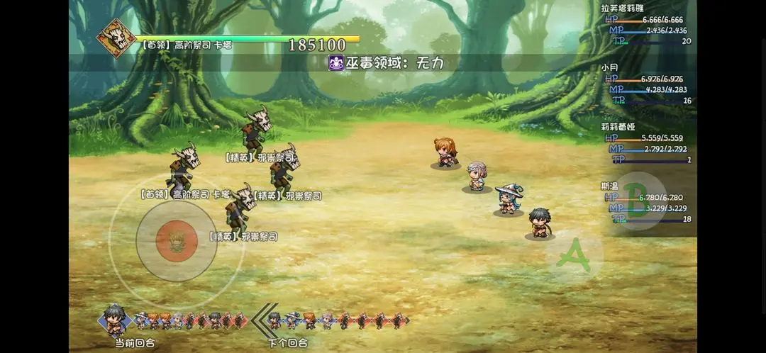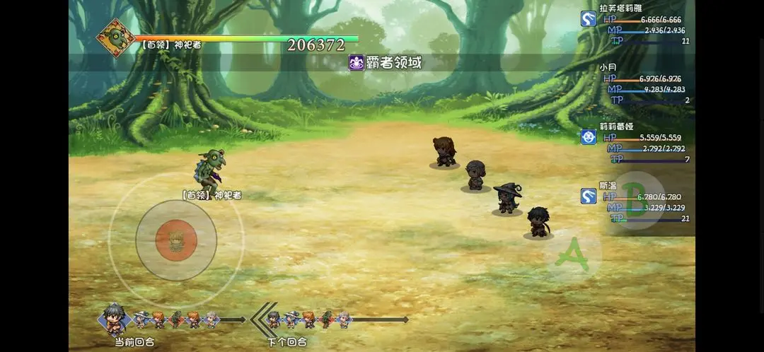 右boss的散魔领域会禁用魔法,所以紫气、破晓这两个角色专注输出就行,记得堆些血量。小月或者输出能力较弱的角色手动用物品回血,尽量速战速决,只要装备不算太差就没什么大问题。