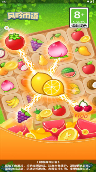 风吟雨语游戏是一款以消除水果为核心玩法的休闲益智小游戏。游戏中,玩家只需把相同的水果连接起来,就能实现快速消除。游戏包含上百个关卡供玩家挑战,完成关卡后可免费领取红包,观看广告还能获得额外红包奖励,整体福利十分丰厚。