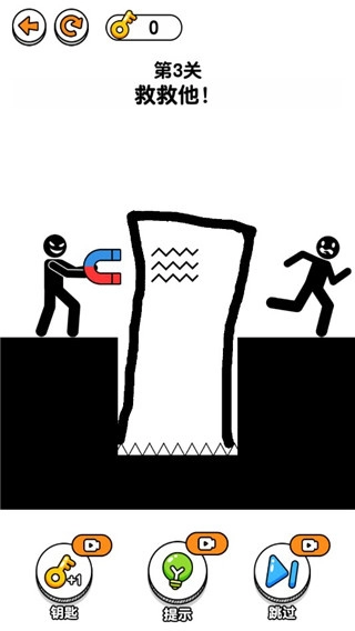 2、接着第三关需要画一堵墙来将陷阱堵住;
