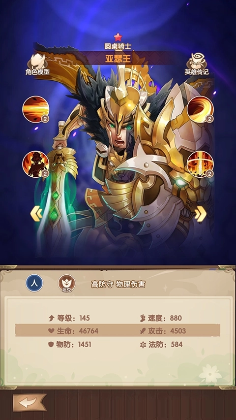 3、亚瑟王 人物传记:传说亚瑟王生着如太阳般璀璨夺目的金发,嗓音比游吟诗人的吟唱还要清亮动听,眼眸是绿宝石般澄澈的碧色;他面容洁净规整,清秀的样貌总能轻易让女性为之倾心。他始终坚守骑士精神,兼具善良、正直、仁爱、忠诚与谦逊有礼的品质,与此同时,他也擅长独立思索,并能自主制定作战策略。
