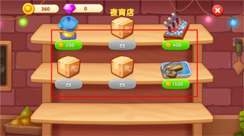 10、当积累到一定数量的厨师卡与金币,就能解锁一家全新店铺。而且每家店铺提供的餐品各有特色,玩家们赶紧来闯关,开启更多美味之旅吧!
