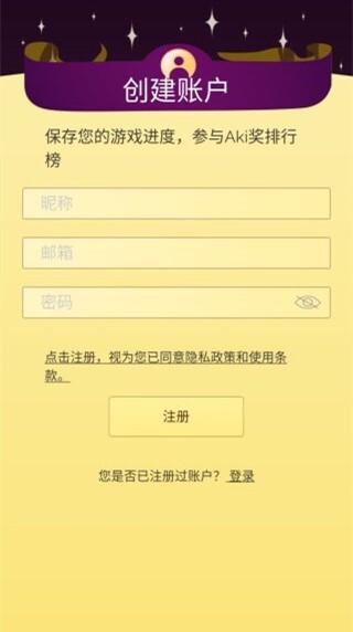 1、这款游戏安装完成后,得先创建一个账户,方可开启游玩。