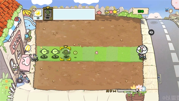 2、点击植物,再点击草坪即可把植物种植到草坪上