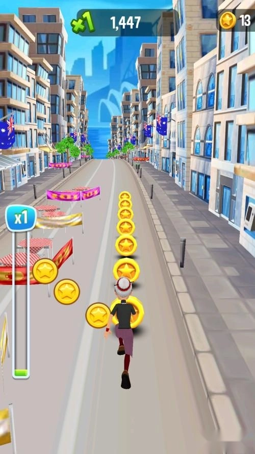 2、这款游戏以跑酷玩法为核心,提供两种操作方式供玩家选择:既可以通过摇晃手机来操控老奶奶,也能借助左右指尖的滑动操作来控制角色。玩家需要灵活应对,避开沿途出现的各种障碍,帮助老奶奶摆脱坏人的追捕,成功逃离险境。