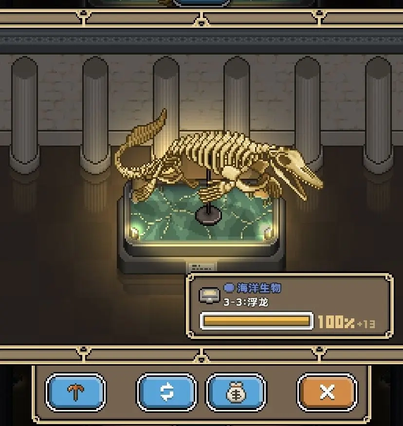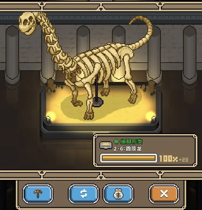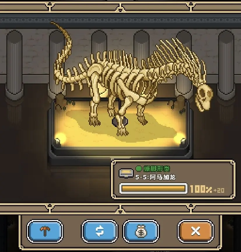 3. 建议按顺序推进,不要跳过关卡,遵循挖掘成本从低到高的节奏逐步进行。高成本的龙类挖掘难度远高于低成本的,并且如果尚未完成当前展品的100%收集就急于开启新展品,未完成的展品收益会大打折扣。不过有个特殊情况:若你手头有较多闲置资金,可以提前搭建一个展台,先挖掘一块骨头放置其中,以此获取少量额外收益。