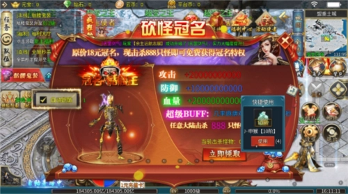4、砍怪冠名福利:原本需花费18元才能获得的冠名,现在只要成功击杀888只怪,就能免费享有冠名特权。