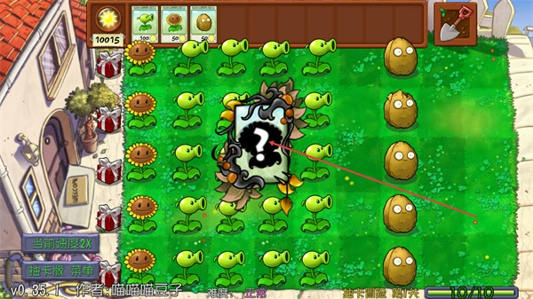 3、完成关卡后会出现带问号的卡片,点击这张卡片就能触发抽卡机制来获取新植物,这是抽卡版的特色玩法,能让植物阵容更丰富,从而更好地应对后续敌人。