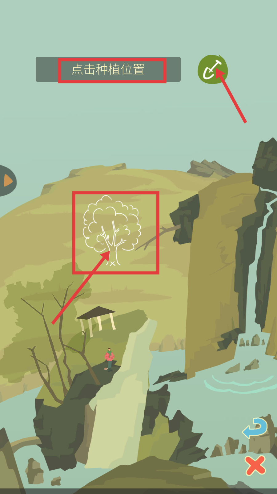 3、点击【种植位置】板块下的树木标识区域,选定种树的具体地点,即可完成种植操作。