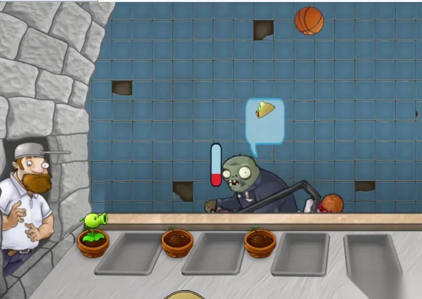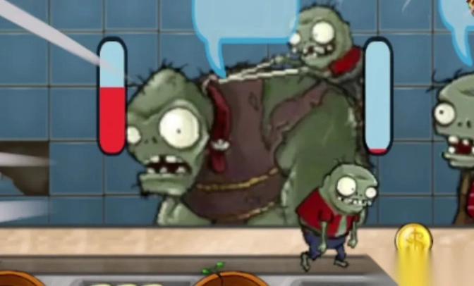 巨人僵尸能够投掷小鬼僵尸,还会把柜台的钱偷走,它的作用和原游戏里的小偷角色差不多。