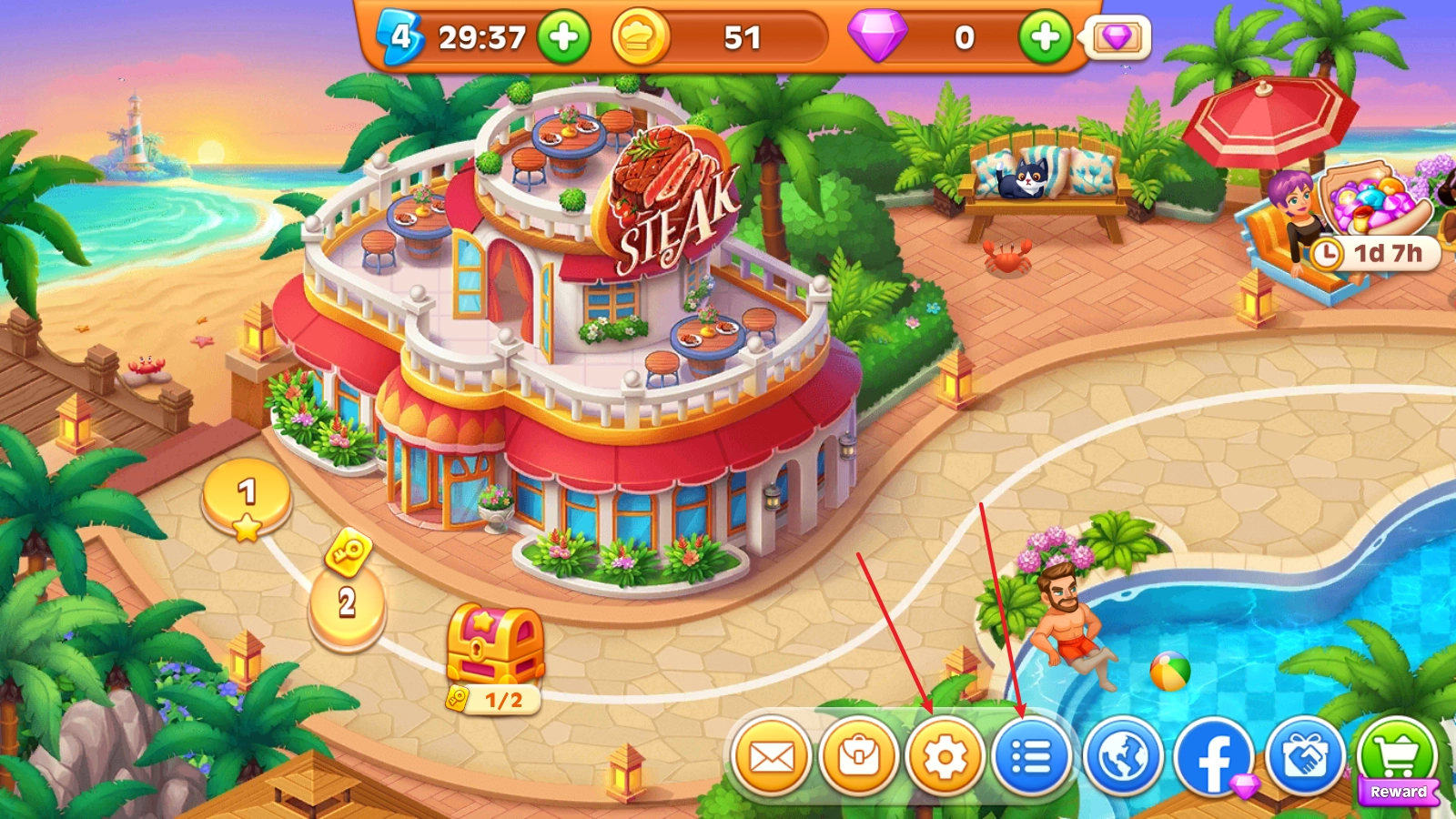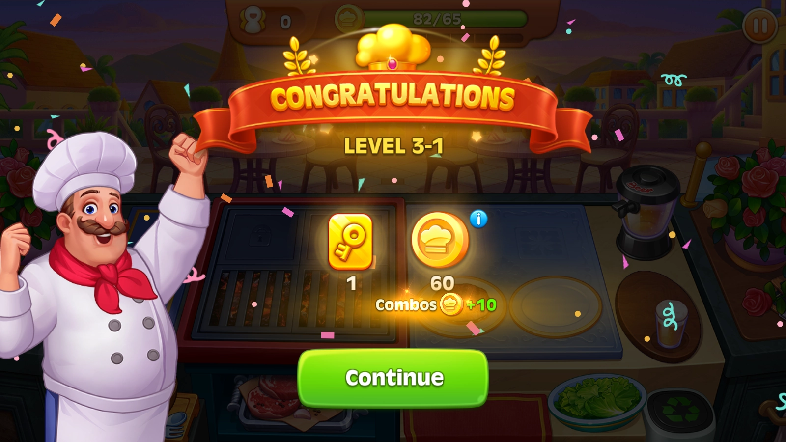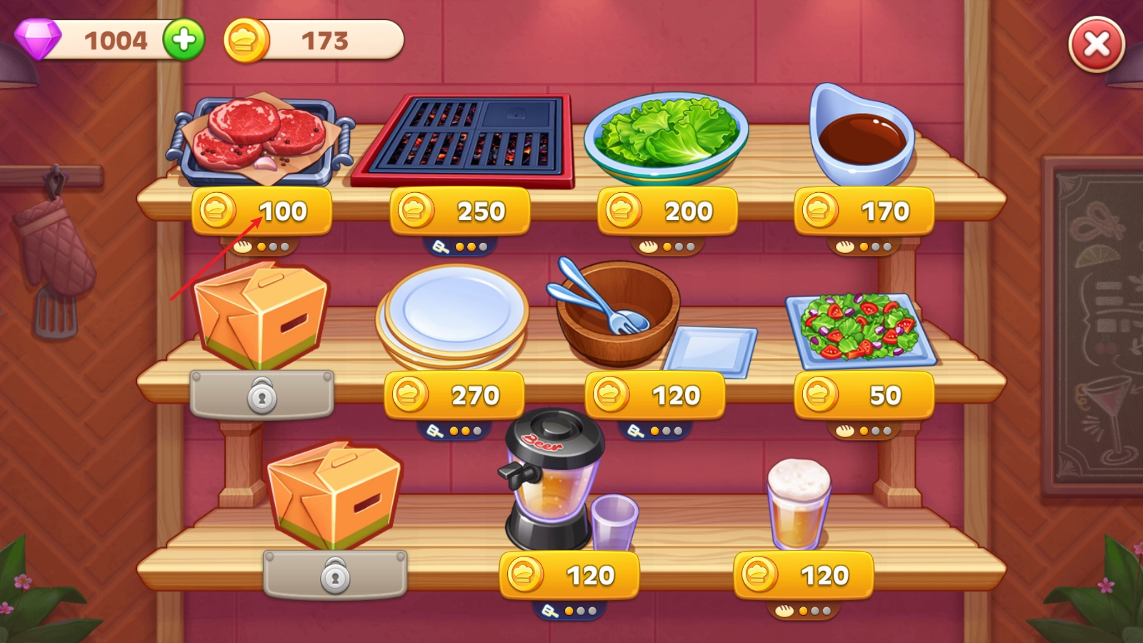 3、玩家还可以用闯关过程中收集到的金币,持续升级自己的道具,这样餐厅制作美食的效率会更高,也能赚取更多金币!