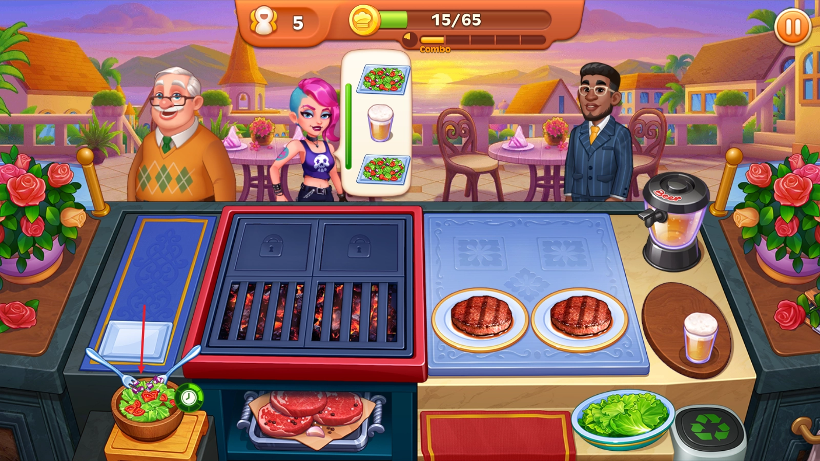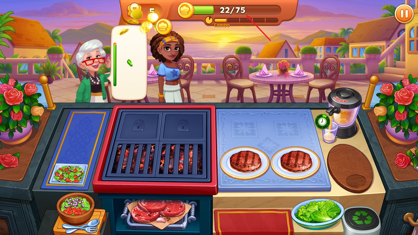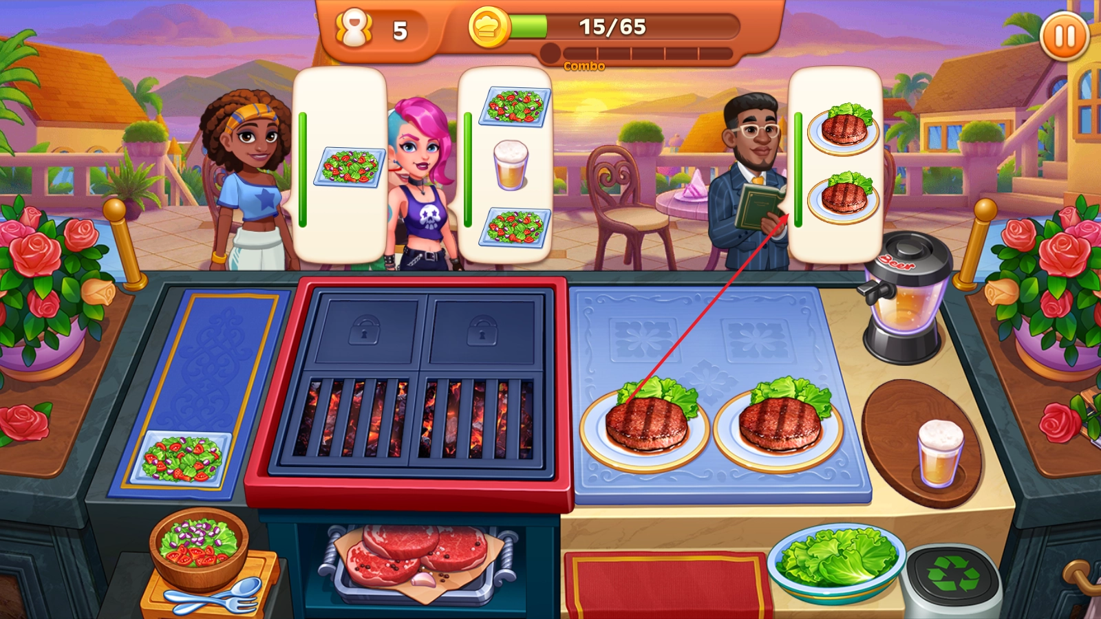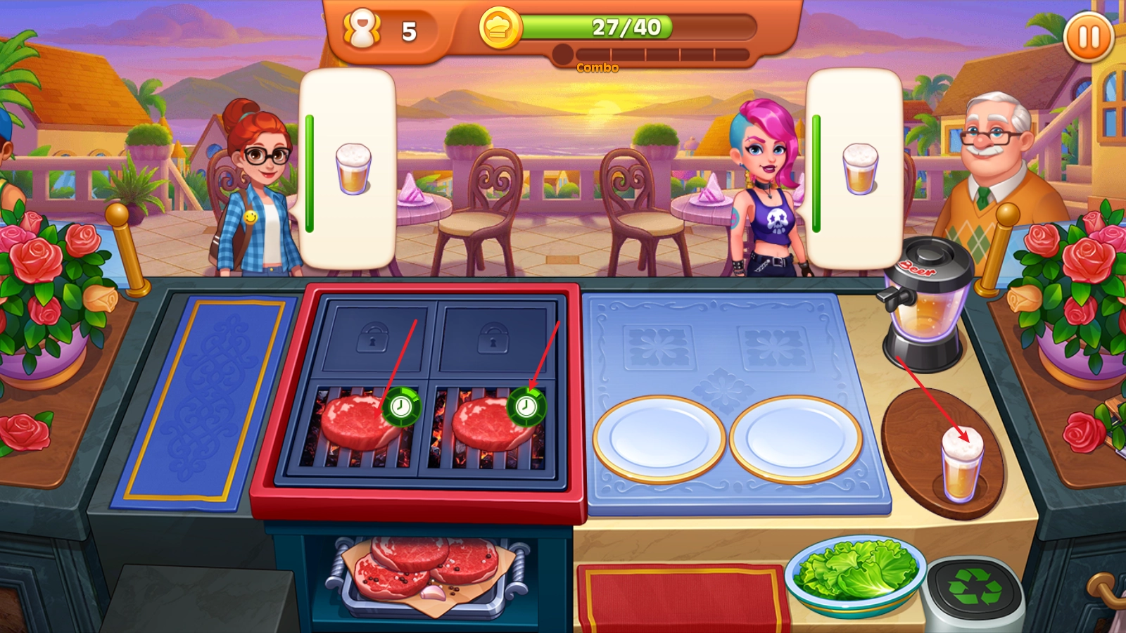 4、客人取到食物后会留下餐费,这些收益会在上方累计,达到目标即可通关。