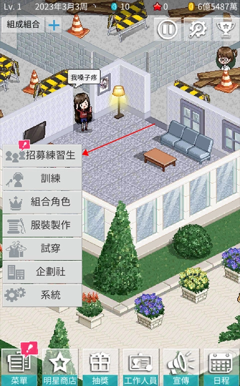 1、玩家进入游戏后,点击【菜单】选项并选择招募练习生,即可开展练习生招募工作