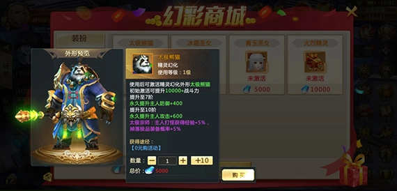 开服活动里的0元购福利,太极熊猫能让角色打怪获得的经验永久增加5%。