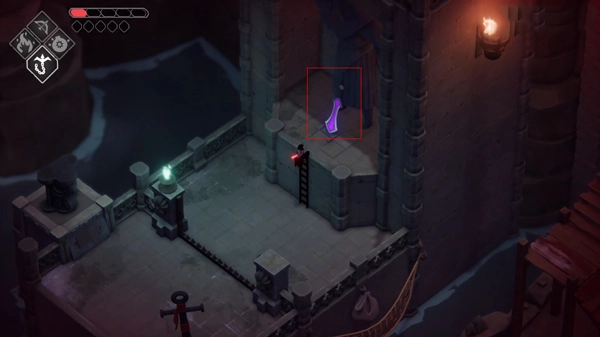 藏在“孤困水手酒馆”的雕像下面,得解开四个隐秘地点的谜题,还要用炸弹的能力炸开障碍物,才能打开大门。