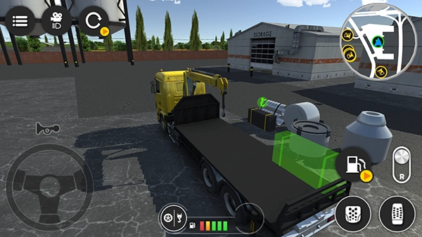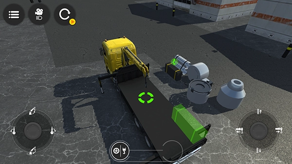 5、把车辆精准停在绿色标记区域,切换到吊车模式进行卸货作业。