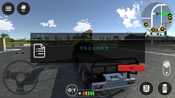 4、依据右上角小地图所显示的导航路线,把装载满货物的车辆安全无误地运送到卸货地点。