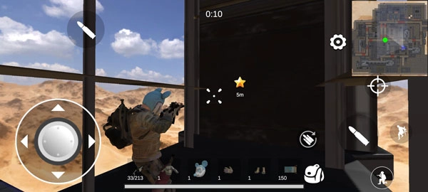 3、右下角的按钮用于控制枪械的瞄准、射击和换弹,同时也能操控角色的跳跃与下蹲动作。