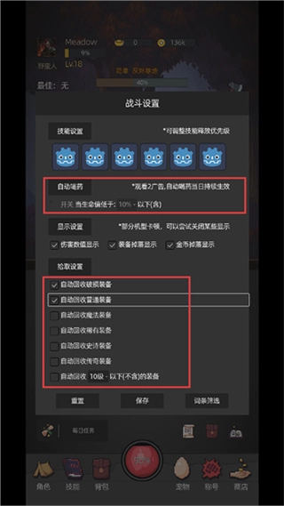 3、阅读完成后,你可以点击进入战斗设置界面。在这里,你可以开启自动回血功能,这样在战斗过程中就无需担心血量不足的问题了。