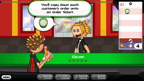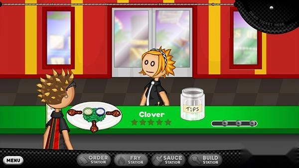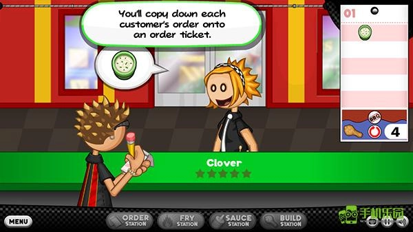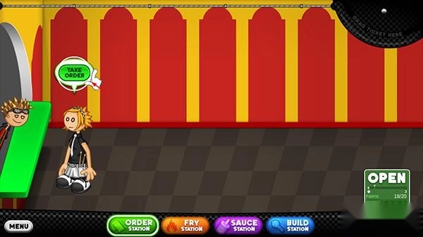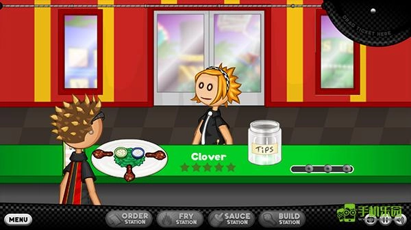 2、来到老爹炸鸡店,玩家首先要接待客人;