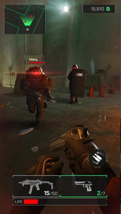 2、游戏提供手枪、冲锋枪、狙击步枪、散弹枪以及高科技辅助装备等多种武器选择。