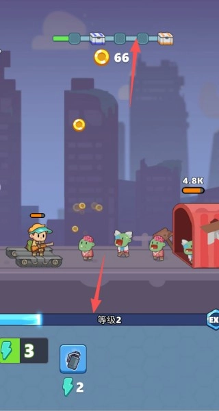 2、收集各类武器并通过持续升级增强战力,针对性搭配武器系统应对不同种类僵尸的进攻;