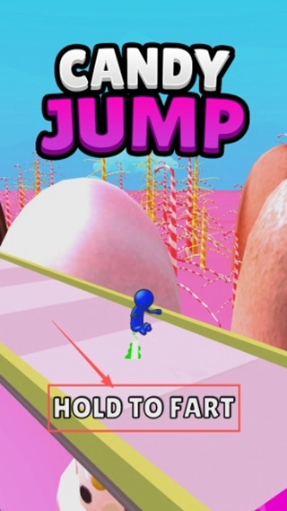 2.蓄力起跳:长按屏幕按“HOLD TO FART”提示蓄力,松开后角色将弹射起步。