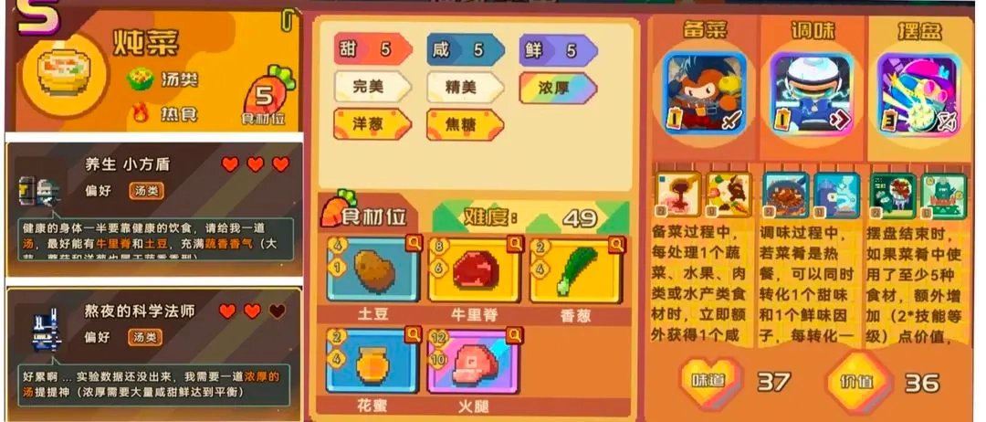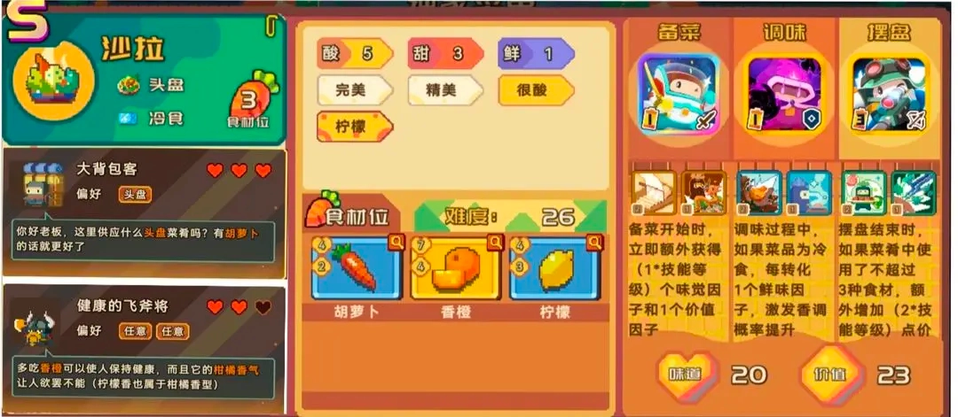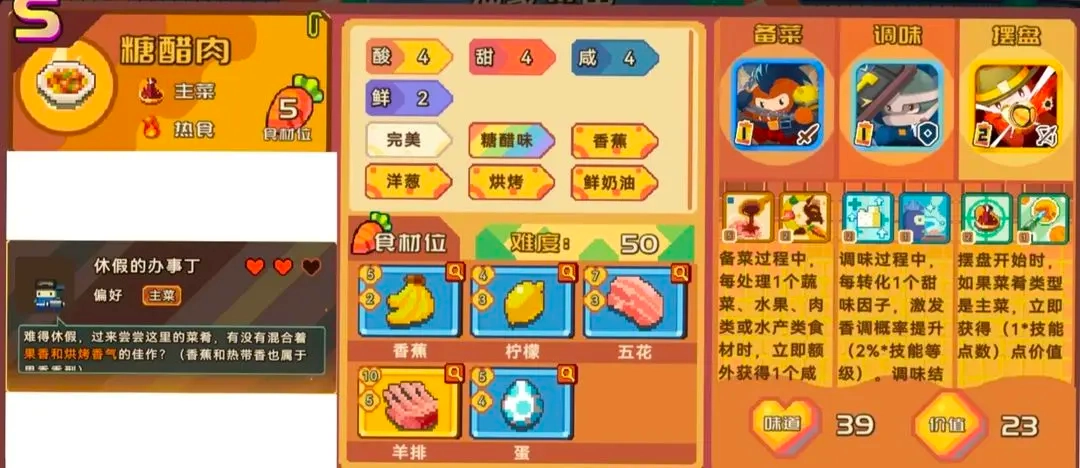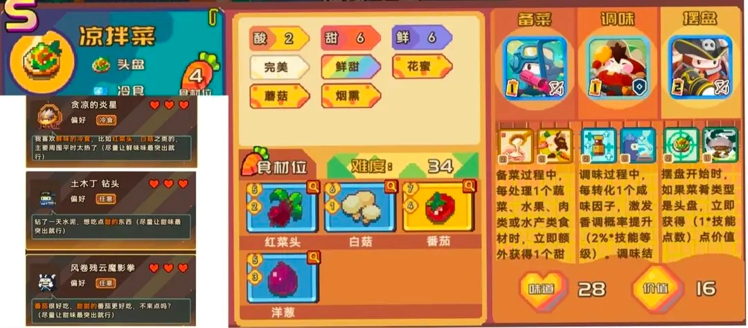 当料理者的技艺水准全面超越所用食材的综合挑战难度时,这道菜品的风味表现会获得1个单位的提升,同时其市场价值将增加3个单位。