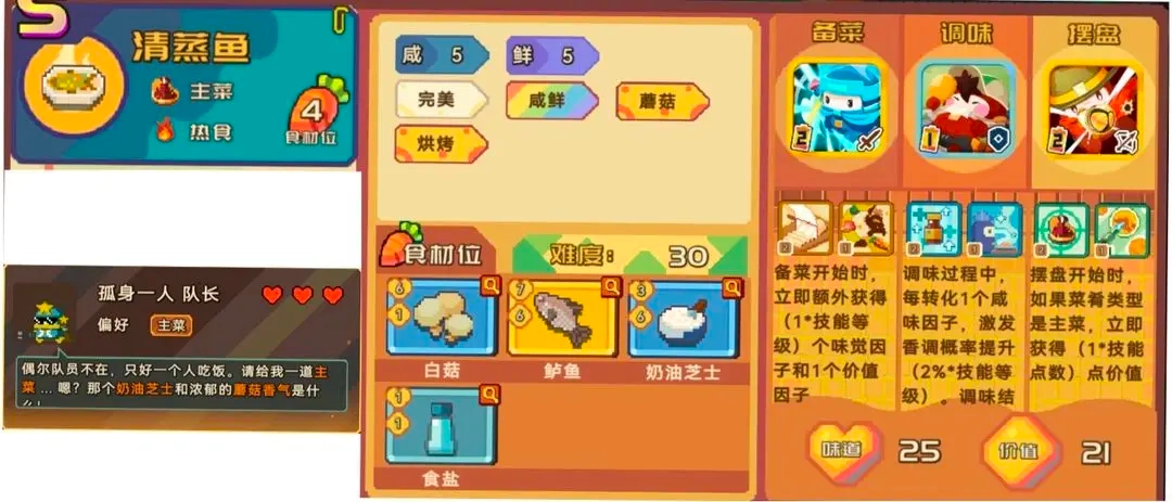 接待工作者挑选了擅长冲击防御工事的幻术师砰砰队长,部分烹饪原料允许进行替换。