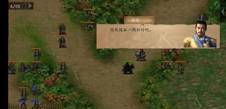 战场:当我方部队接近敌方主营正上方区域时,敌方回合会派遣两名骑兵信使,分别前往左侧和下方的敌营传递消息。我方可以选择优先拦截并攻击这两名信使,阻止他们报信;即便未能成功拦截,也不会对整体战局造成严重影响。本关的核心目标是确保刘宠存活——若刘宠阵亡,将无法获得大黄弩这一关键奖励。因此,建议提前安排兵力向下移动,通过触发对话的方式封锁下方敌营的敌军行动路线。需要注意的是,刘宠将在第五回合于战场右下角位置登场。