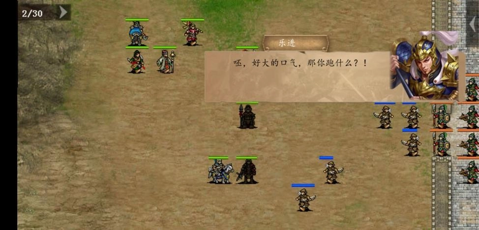 个人依旧更倾向于采纳曹洪的建议——智力果确实比敏捷果实用,而且开局时敌军与我军不过一箭之遥,起手就能发起攻击。要是选了荀彧的方案,消灭本屯后还得翻山回来驰援东武阳,实在太浪费时间了,毕竟我军的山地机动性实在糟糕。直接朝着黄巾军正面猛攻就对了。等乐进靠近睦固时会触发单挑,别看睦固嘴上厉害,实际不堪一击,很快就被乐进打跑了。